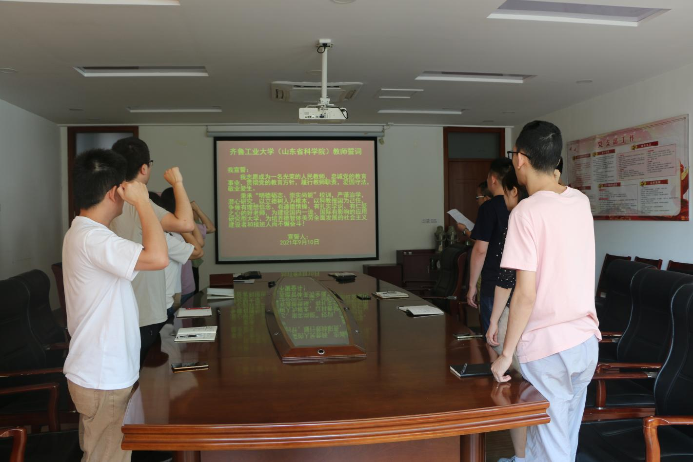 最后,全体教师代表,隆重的进行了教师宣誓仪式!本次座谈会,坚定了研究所教师们的职业信念和职业操守,增强了教师们的职业责任感、幸福感和荣誉感。