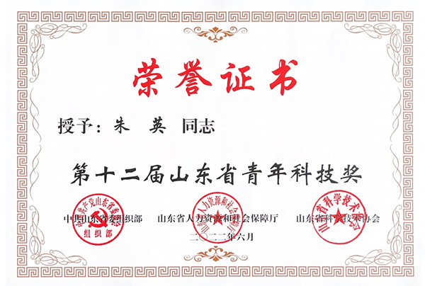 近日,第十二届山东省青年科技奖颁奖仪式在山东省2022年“全国科技工作者日”座谈会上举行,会议表彰了第十二届山东省青年科技奖获得者,齐鲁工业大学(山东省科学院)材料科学与工程学部朱英研究员荣获本届山东省青年科技奖。