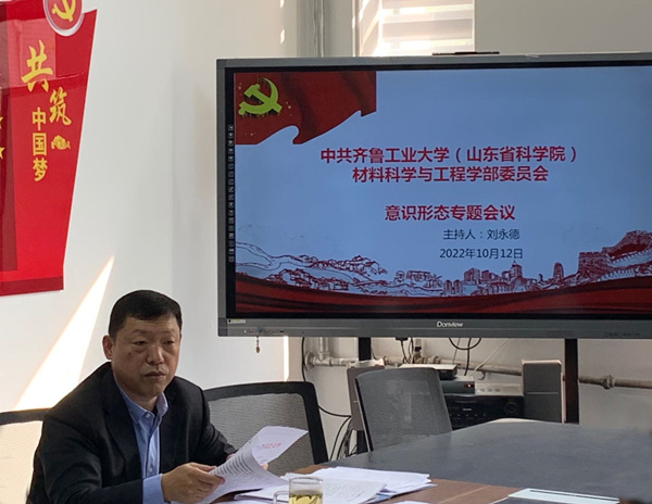 10月12日材料学部党委召开意识形态工作专题研讨会,研究和部署学部意识形态工作,党委成员参加会议,各党支部书记列席,党委书记刘永德主持并讲话。