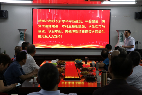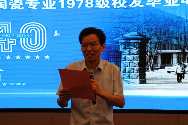 任民代表校(院)广大师生对各位校友重返母校表示热烈欢迎!任民回顾了校(院)发展历程,回顾了日用陶瓷专业发展的历史,向校友们详细介绍了科教融合以来校(院)在人才培养、学科建设、科技创新、服务地方经济社会发展等方面取得的突出成效,充分肯定了校友们为国家、为社会、为母校发展做出的突出贡献,对校友们长期以来关心、关注、支持母校发展表示真诚的感谢!为校友们送上了诚挚的祝福!
