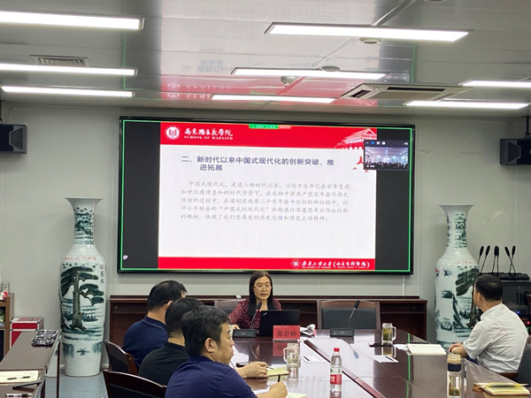 为深入推进学习贯彻习近平新时代中国特色社会主义思想主题教育,牢牢把握“学思想、强党性、重实践、建新功”的总要求,6月21日下午,材料科学与工程学部邀请马克思主义学院教授徐舒映在二号教学楼B204会议室开展了“发扬历史主动精神 推进和拓展中国式现代化”主题教育讲座。材料学部领导班子成员与全体教职工参加,千佛山校区教职工线上参加,讲座由学部党委书记刘永德主持。