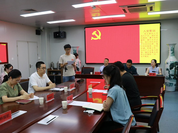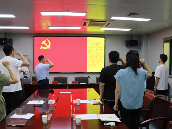 随后,在领誓人姚彬的带领下,全体参会人员面对党旗,举起右拳,庄严宣誓:“我志愿加入中国共产党,拥护党的纲领,遵守党的章程,履行党员义务,执行党的决定,严守党的纪律,保守党的秘密,对党忠诚,积极工作,为共产主义奋斗终身,随时准备为党和人民牺牲一切,永不叛党。”铮铮誓言、拳拳红心,铿锵有力的话语表达了他们对党的深厚感情和为党的事业奋斗终身的决心。