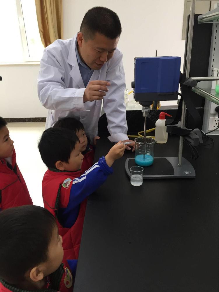 孩子们首先来到了新修缮的表面工程材料创新团队实验室,充满好奇地看着各种实验设备,一个个跃跃欲试的想要去做实验。科研人员给他们展示了吹泡泡和淀粉写字变色两个实验,并讲解了实验原理,孩子们都认认真真的看和听。随后,在科研人员的监督看护下,孩子们自己动手做起了沉淀实验,争先恐后地跑到试验台前,去体验和探索科学领域的无穷奥秘。