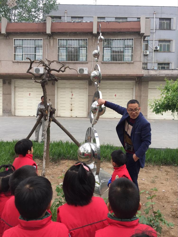 在完成了科学小实验之后,孩子们又来到了春意盎然的小花园。小朋友们都很自觉地爱护小花小草,不乱踩乱摘,并且对花园内的陶瓷弧板足球和风动平衡仪充满了浓厚的兴趣,不停地玩耍。之后,孩子们又来到了功能晶体材料创新团队实验室,认真听团队负责人王旭平叔叔讲解晶体知识,并参观了实验室。