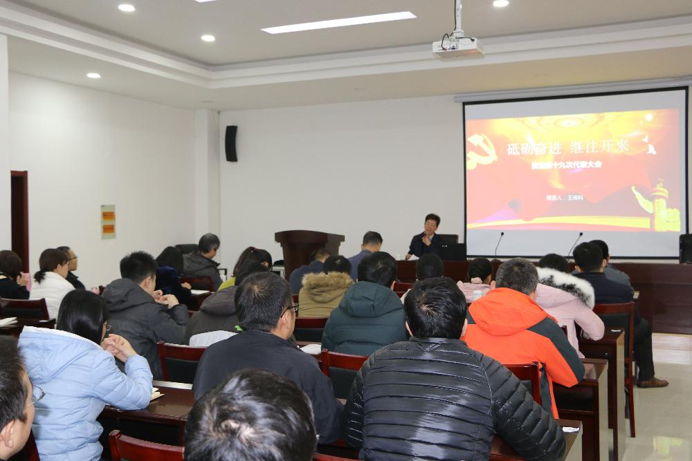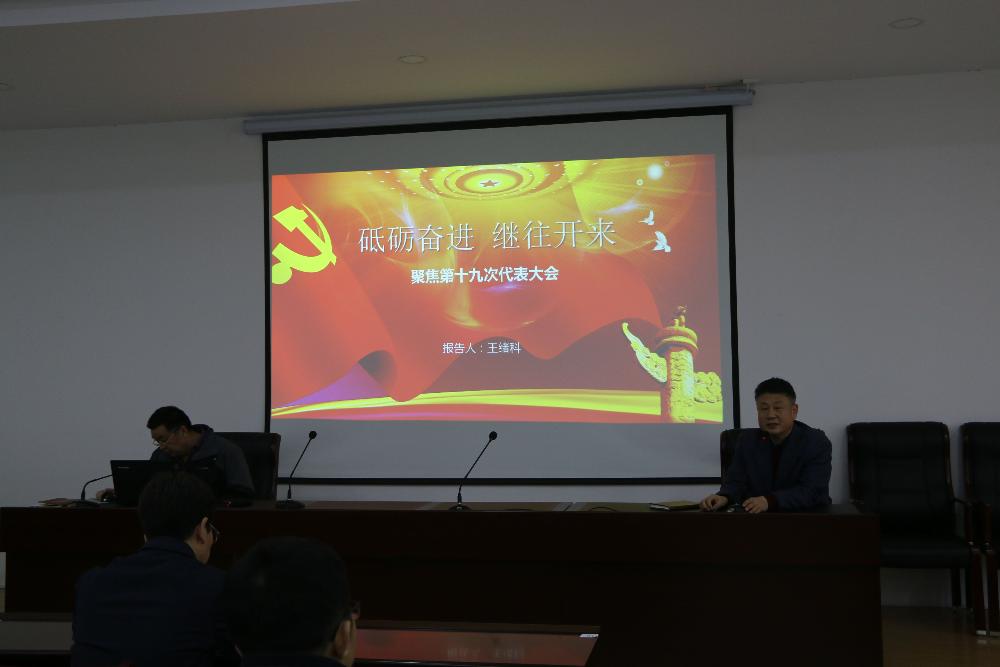 王绪科书记首先从“不忘初心、牢记使命”介绍了十九大会议主题,从过去五年中国共产党取得的历史性成就与变革等方面解读十九大重要内容。十八大以来,全国在经济建设上取得重大成就,经济总量稳居世界第二,全面深化改革,思想文化建设,人民生活不断完善,强军兴军开创新局面,全面从严治党成效显著,习近平总书记的报告也对党和国家提出了新的要求。