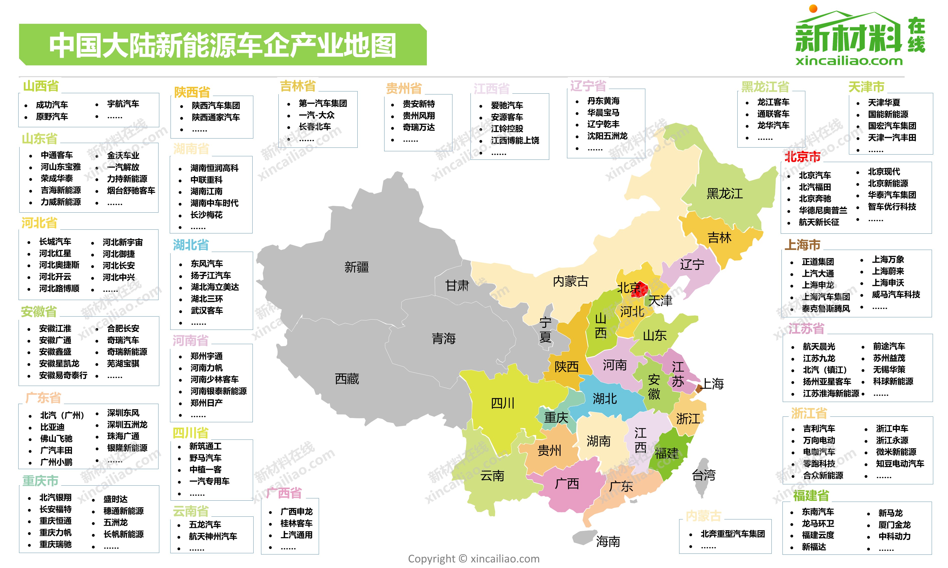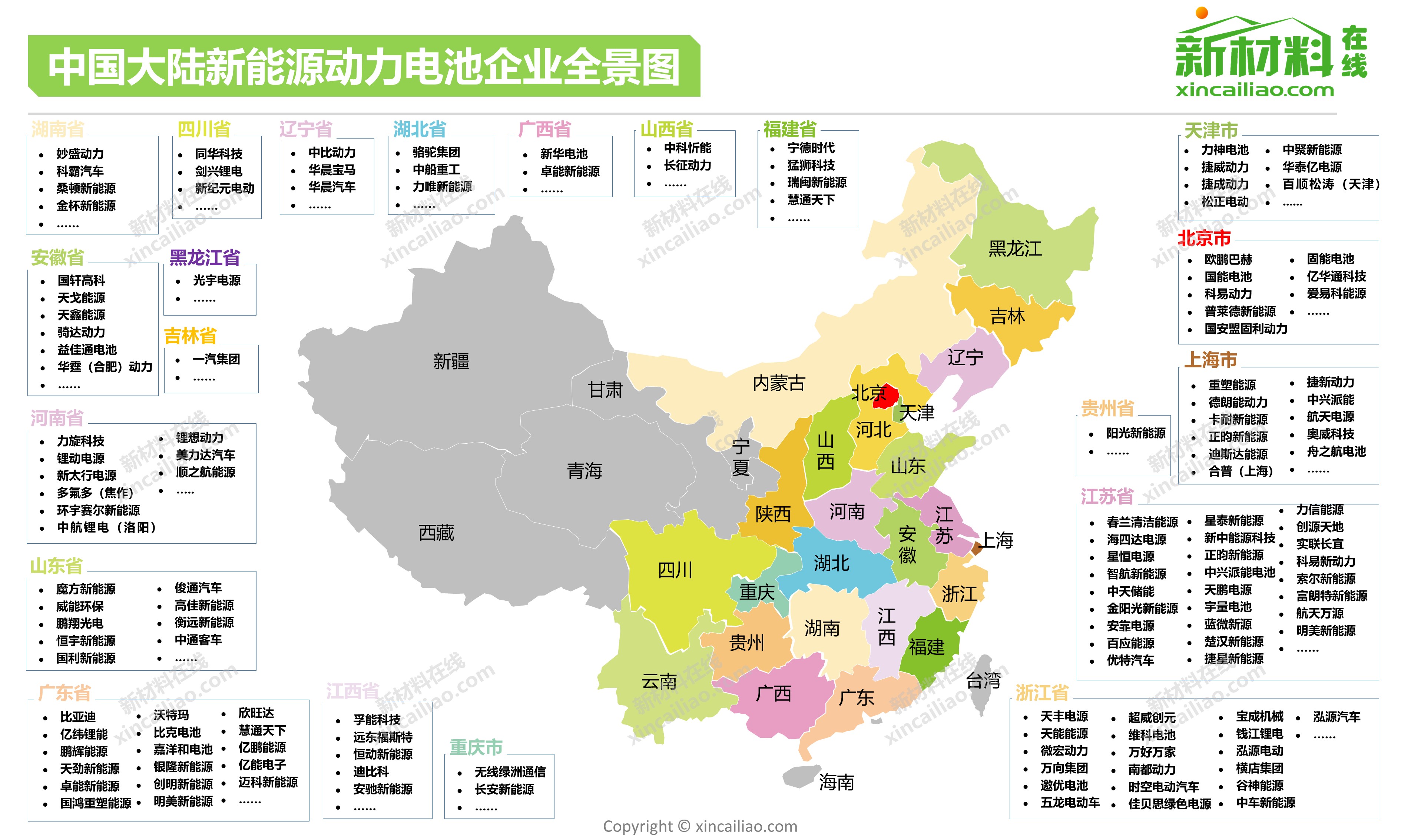 鉴于2018年新能源汽车与动力电池行业洗牌速度加剧,为加深对行业认知与理解,新材料在线?调研了中国新能源汽车—动力电池产业链各省市1500+家企业,并绘制了新能源汽车—动力电池产业版图,供广大新能源汽车—动力电池产业人事参考与学习。欲获得此版图高清完整版或与作者沟通交流,可与作者联系(15112343809,同微信)。