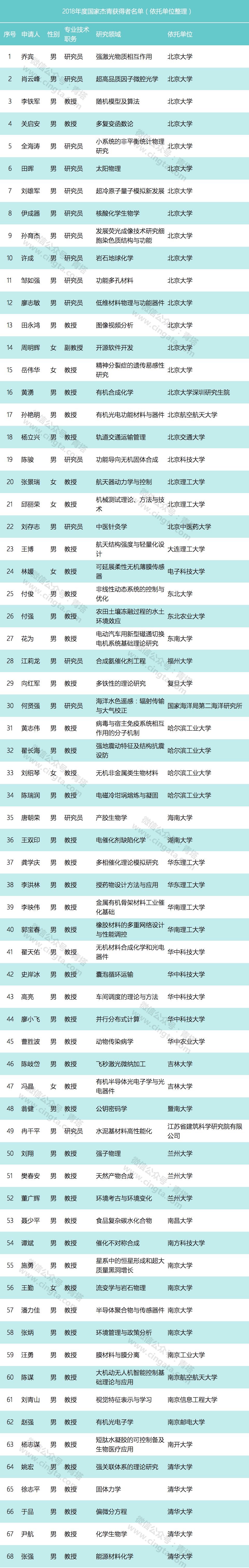 日前,国家自然科学基金委员会发布《关于公布2018年度国家杰出青年科学基金申请项目评审结果的通告》,2018年国家杰青名单正式尘埃落定。