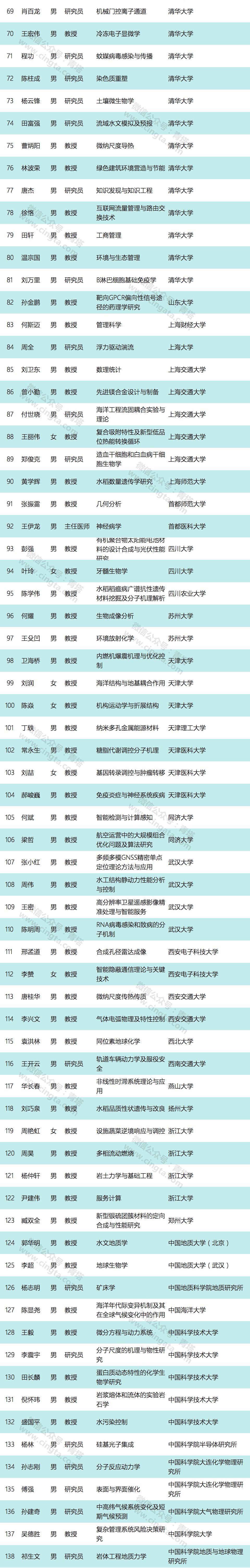 本年度共有199位国家杰青申请人正式入选资助名单,来自112家科研单位,包括各大名校以及中国科学院等。