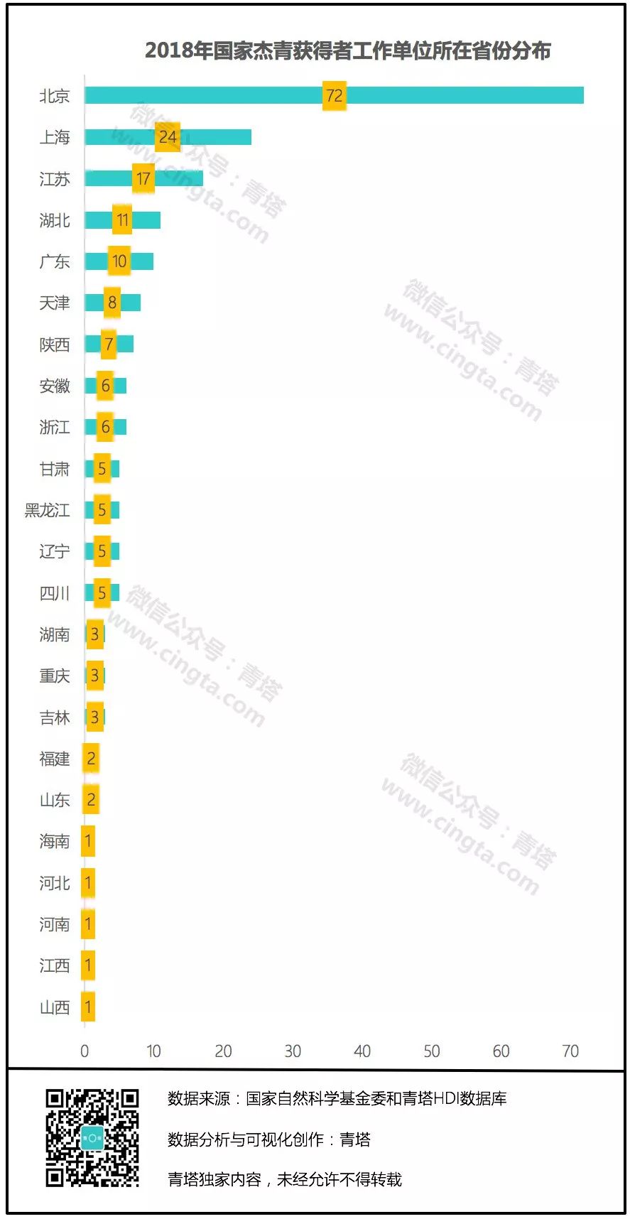 需要注意的是,广西、贵州、内蒙古、宁夏、青海、西藏、新疆、云南等省份,无1人入选2018年国家杰青。