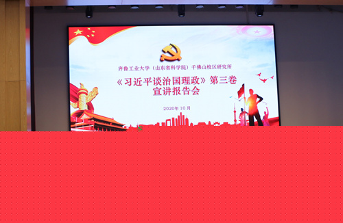 10月28日,为深入贯彻落实中央办公厅转发的《中央宣传部、中央组织部关于认真组织学习〈习近平谈治国理政〉第三卷的通知》精神,经与校(院)马克思主义学院沟通,新材料所邀请校(院)马克思主义学院徐舒映教授和张敏副教授来千佛山校区宣讲。新材料所党委书记张新恩主持宣讲会。新材料所、自动化所、能源所、计算中心、分析测试中心、情报所和战略所领导班子成员及党员、入党积极分子等120余人参加宣讲活动。
