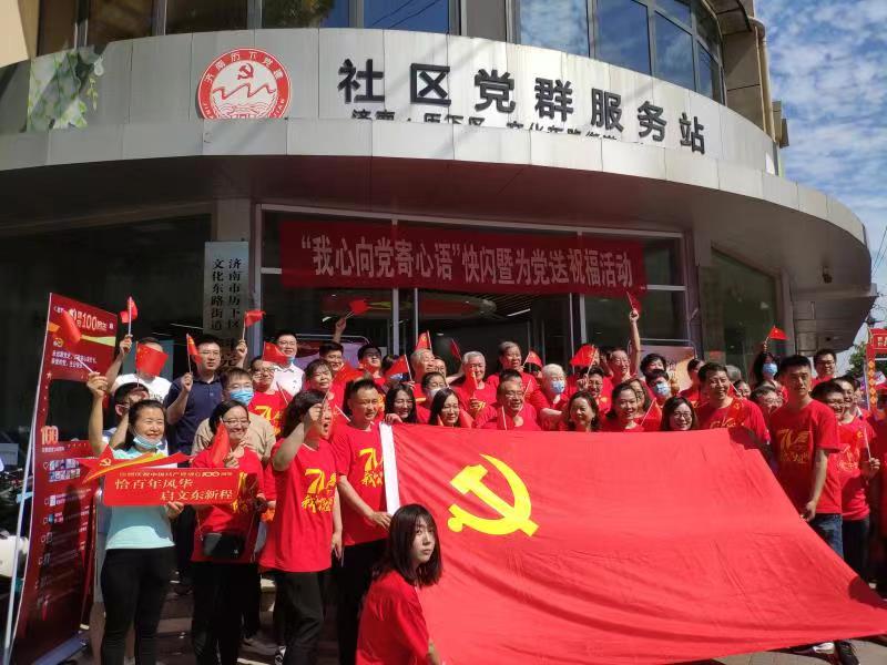 6月21日上午,为庆祝建党一百周年,新材料所党委组织党员、积极分子到科院路社区参加“我心向党寄心语”快闪暨送祝福活动。