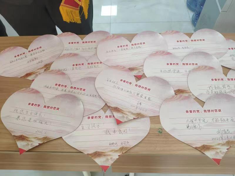 活动现场,“双报到”单位党员、社区党员、志愿者、居民等集体演唱建党百年改编版《少年》、《我们走在大路上》,大家随着音乐挥舞着手中的国旗,脸上洋溢着幸福的笑容,唱出了对党崇高的敬意和深情的热爱。随后,大家在社区党群服务站参观志愿者创作的书画作品,在一张张红色的心形卡片上写下对党真心的祝福,党员在社区党委书记带领下重温入党誓词。