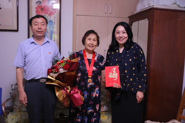 值建党100周年之际,7月1日,新材料所党委书记张新恩,党委委员、副所长(主持行政工作)李艳代表党委走访慰问获得“光荣在党50年”纪念章老党员。