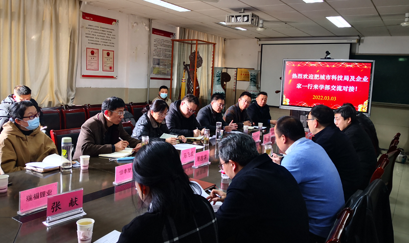 2022年3月3日,肥城市科技局副局长张翠玲携7家企业来学部交流对接。学部主任郝霄鹏、常务副主任周吉学及相关科研人员参加了交流活动。