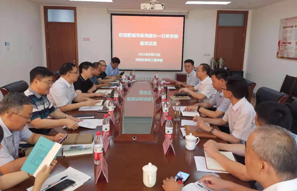 2022年8月23日,肥城市委常委、组织部部长、统战部部长赵伟一行来学部对接交流,科研管理部部长舒明雷、学部主任郝霄鹏、常务副主任周吉学及相关创新团队人员参加了交流活动。