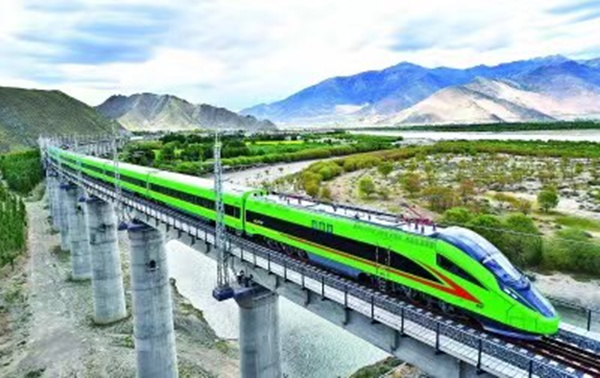 拉林铁路是西藏首条电气化铁路。图为复兴号列车行驶在西藏山南。新华社发