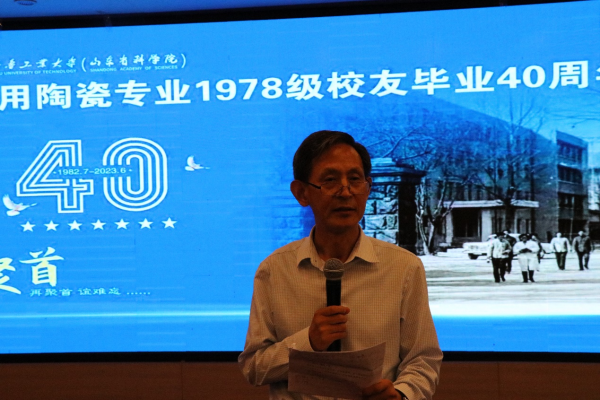 千帆历尽四十载,归来仍少年!在这个充满希望与离别的六月毕业季,齐鲁工业大学(山东省科学院)迎来了硅酸盐系日用陶瓷专业78级校友重返母校。40余位校友不远千里,从五湖四海齐聚母校,赴青春之约,追忆往日时光,共叙同窗之情。校(院)副校长任民出席本次活动,校友工作办公室主任汤庆磊,材料科学与工程学部党委书记刘永德、学部主任郝霄鹏参加活动。