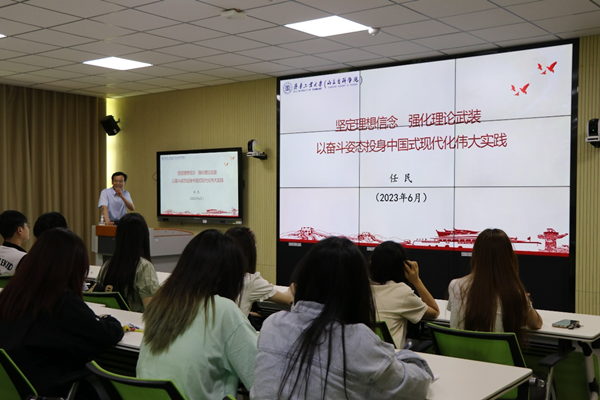 6月8日下午,副校(院)长任民在长清校区2号公教楼202教室以“坚定理想信念,强化理论武装,以奋斗姿态投身中国式现代化伟大实践”为题讲授了学习贯彻习近平新时代中国特色社会主义思想主题教育党课,材料科学与工程学部80余位学生聆听了党课。党课由材料学部党委副书记池振国主持。