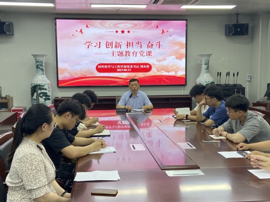 为深入开展学习贯彻习近平新时代中国特色社会主义思想主题教育,以真学真用、真抓实干的具体行动,推动主题教育落实到位。6月13日下午,材料科学与工程学部党委书记刘永德在2号教学楼B204会议室作题为《学习 创新 担当 奋斗》的主题教育党课,学部全体毕业生党员到场聆听本次党课。