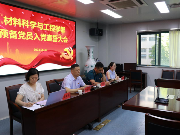 为热烈庆祝中国共产党成立102周年,深入推进学习贯彻习近平新时代中国特色社会主义思想主题教育,进一步加强对新党员的教育和培养,2023年6月30日下午,材料科学与工程学部在二号教学楼B204会议室召开预备党员入党宣誓仪式。材料学部党委书记刘永德、党委副书记池振国、团委书记姚彬、各学生党支部书记与学部全体党员共同参加本次仪式。仪式由学部组织员岳文芳主持。
