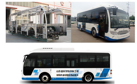 山东省科学院新材料研究所与山东沂星电动客车有限公司于2016年联合开发出世界上第一辆镁合金轻量化电动客车(型号SDL6832EVG,车身8.3米,24座),实现了客车车身骨架(底盘除外)的镁合金轻量化。客车车身骨架全部采用镁合金轻量化材料,包括125支镁合金型材、12块镁合金板材。