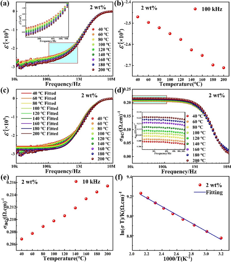 近日,齐鲁工业大学(山东省科学院)材料科学与工程学部环境工程材料创新团队采用热压烧结法制备了不同碳纳米纤维(CNF)含量的氧化铝(Al2O3)陶瓷复合材料,研究了CNF含量和外界温度对超复合材料电性能的影响(图1)。结果表明,CNF含量为2 wt%的复合材料表现出负介电行为,这是由于CNF三维导电网络中自由电子的低频等离子体状态,负介电行为符合Drude模型。此外,高CNF的陶瓷复合材料的负介电常数绝对值增大,这是由于增加的CNF网络为自由电子提供了更多的路径,以及材料内部的自由电子浓度变大。