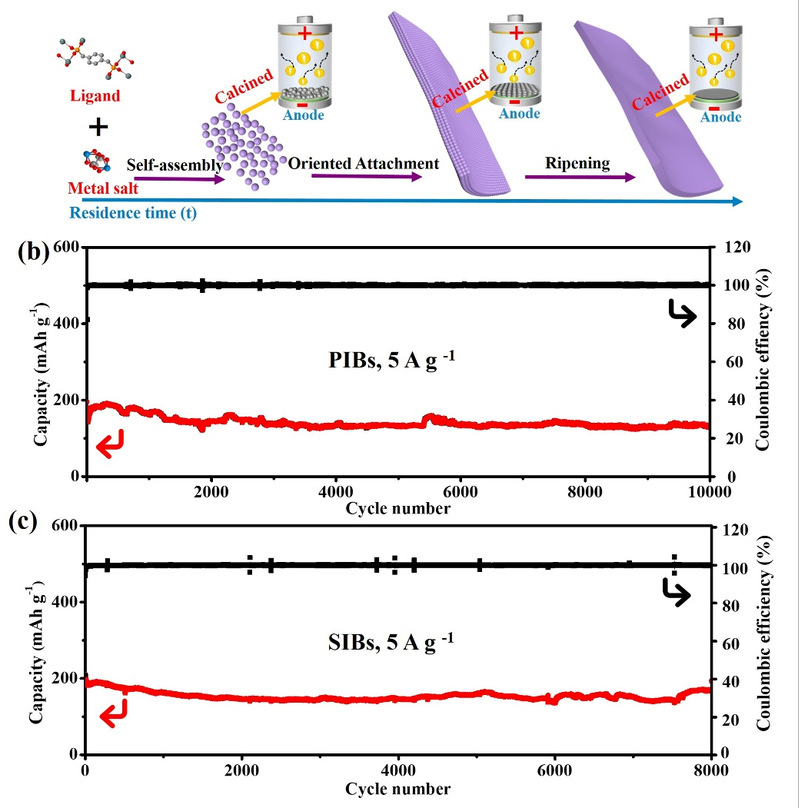 近日,齐鲁工业大学(山东省科学院)材料科学与工程学部氢电能源材料创新团队基于MOF晶体生长过程中颗粒附着晶化(Crystallization by Particle Attachment,CPA)机制,利用MOF的自组装超结构作为模板,开发出应力分散的超结构Sn3(PO4)2@PC作为长寿命的钾/钠离子电池负极材料。