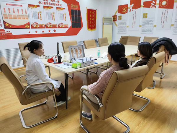 活动现场,中医志愿者热情地为每一位前来咨询的老师和学生进行细致的问诊,并根据他们的身体状况和症状,运用中医独特的诊疗方法进行治疗。此次义诊活动包括脉冲针灸、拔罐、刮痧、足底反射疗法、水底反射疗法以及热疗等多种治疗方式,旨在帮助大家缓解疲劳、解除病痛,提高身体健康水平。
