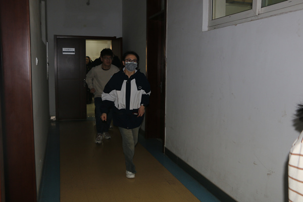 直播结束后,全体师生开展消防疏散演练。在老师指挥下,按照学习的火灾疏散撤离方法及要点,全体师生从学术报告厅安全、快速、有序地撤离办公楼。