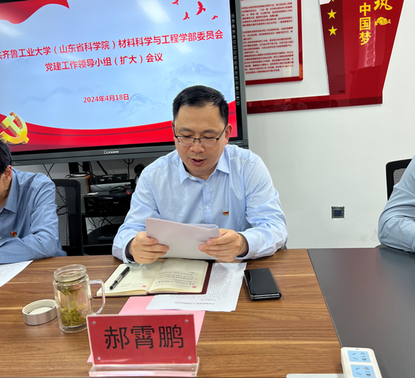 会上,郝霄鹏传达了《关于在材料学部开展党纪学习教育的实施方案》。他指出,今年4月-7月在全党开展党纪学习教育,是以习近平同志为核心的党中央作出的重大决策部署。学部党委已成立工作专班,制定工作方案,启动学部党纪学习教育工作。我们要深刻领会开展党纪学习教育的重要意义,准确把握学习教育的目标要求、任务安排,严格按照校(院)党委部署要求和学部制定的实施方案,谋划好落实好党纪学习教育各项工作,做好层层动员部署,确保全体党员能够围绕《中国共产党纪律处分条例》开展全面、深入地学习,推动《条例》学习入脑入心。