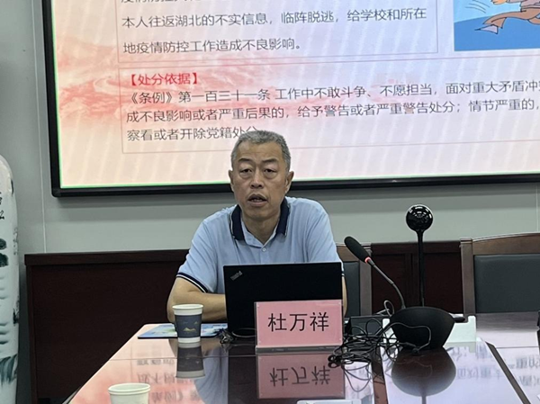 杜万祥以“自觉学纪知纪明纪守纪 始终做到忠诚干净担当”为题进行专题辅导,详细解读了《条例》修改的重大意义、主要内容、鲜明特点和精神实质,结合大量鲜活案例,对违反《条例》的具体情形进行了深入剖析,使与会人员对《条例》有了更加全面、深刻的认识。同时,杜万祥还特别强调了党员干部要牢记党的宗旨,坚定理想信念,严守党的纪律规矩,做到忠诚干净担当。他要求大家在工作中要时刻保持清醒头脑,用典型案例警醒自己,确保党的路线、方针、政策得到贯彻执行。
