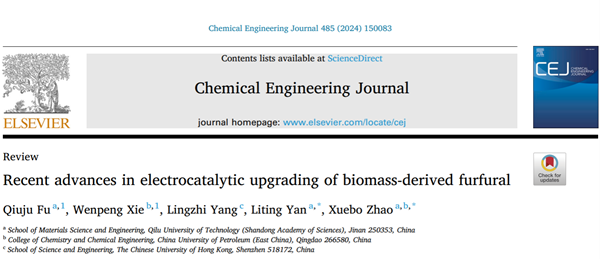 上述成果以“Recent advances in electrocatalytic upgrading of biomass-derived furfural”为题,发表在国际知名期刊《Chemical Engineering Journal》(IF: 15.1)上。齐鲁工业大学(山东省科学院)材料科学与工程学部联合培养博士研究生付秋菊为论文的第一作者,材料学部闫理停副教授和赵学波教授为文章的共同通讯作者。