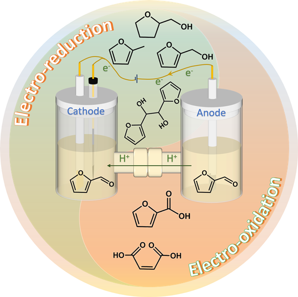 作为可再生有机碳的来源,将生物质衍生平台分子选择性升级为高附加值化学品和燃料具有重要作用,能够极大缓解因传统化石燃料短缺造成的能源危机问题。由于其独特的化学结构,糠醛被认为是生物质衍生的最重要的平台分子之一,能够转化为各种有价值的化学品,包括糠醇、糠酸和2-甲基呋喃等。传统来说,需要在高温高压条件下实现糠醛的升级转化。近年来,电化学转化过程被广泛认为是一种有前景的方法以替代传统热催化转化过程,从而在温和条件下将糠醛分子转化为各种高附加值化学品。