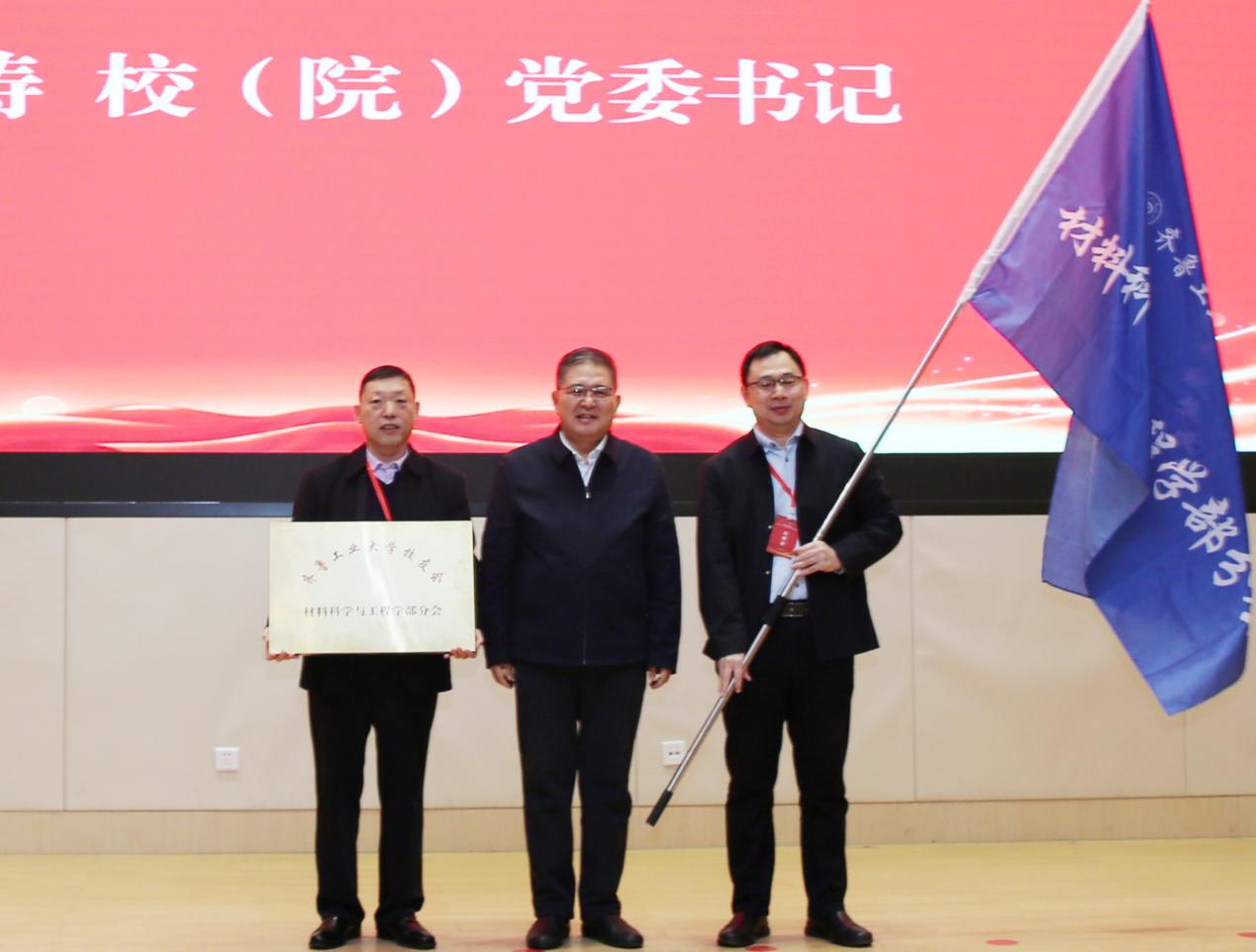 校友工作办公室主任、校友会秘书长汤庆磊,材料学部党委书记、校友分会会长刘永德为理事代表颁发聘书。
