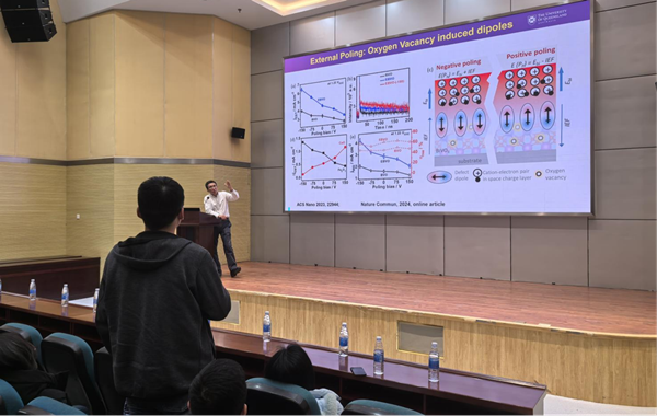 报告结束后,与会的老师和学生积极提问,提出了关于控制氧空位,能带弯曲和偶极子之间的关系,偶极子和电荷的作用以及和材料本身的关系等相关问题。王连洲院士与大家进行了深入的交流,耐心解答了大家的问题,同时分享了自己的研究心得和见解,给同学们提供了宝贵的学术指导和实践建议。