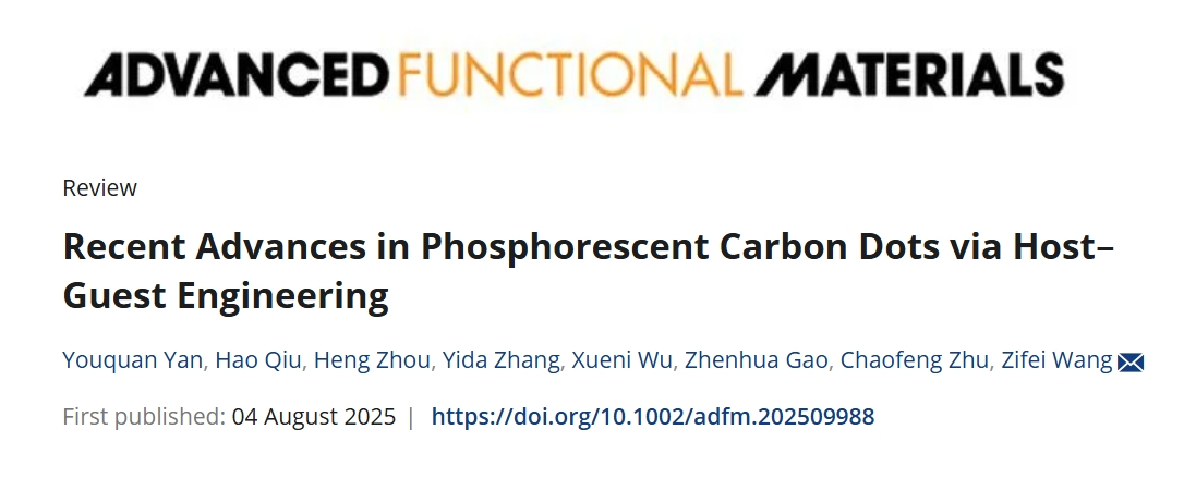 近日,齐鲁工业大学(山东省科学院)材料科学与工程学部微纳光电功能材料创新团队王子飞老师课题组在《Advanced Functional Materials》(影响因子19.0)上在线发表了题为Recent Advances in Phosphorescent Carbon Dots via Host–Guest Engineering重要综述论文。材料学部2023级硕士研究生闫有泉为文章的第一作者,王子飞老师为文章的通讯作者齐鲁工业大学(山东省科学院)为唯一单位。